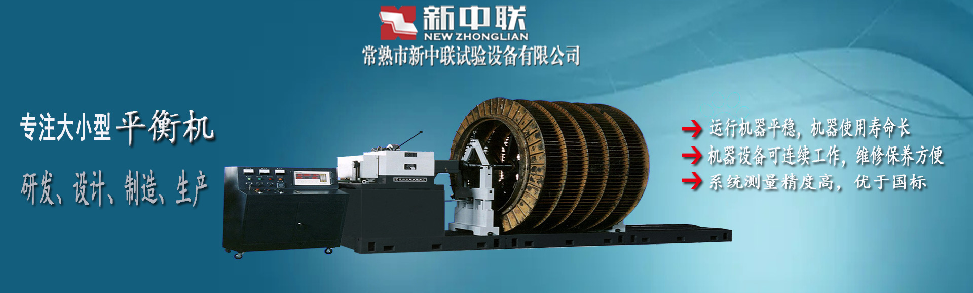 专业的平衡机专家-常熟市新中联试验设备有限公司是平衡机、风机平衡机、电机平衡机、立式平衡机、专用平衡机、传动轴平衡机、现场平衡仪、平衡机配件、动平衡机、造纸机械平衡机、农机平衡机、砂轮平衡机、离心机平衡机、刀具平衡机、滚筒平衡机、胶辊平衡机、风电平衡机、陀螺平衡仪、微电机平衡机、自动平衡机等产品专业生产加工的公司,拥有完整、科学的质量管理体系。常熟市新中联试验设备有限公司的诚信、实力和产品质量获得业界的认可。欢迎各界朋友莅临参观、指导和业务洽谈。